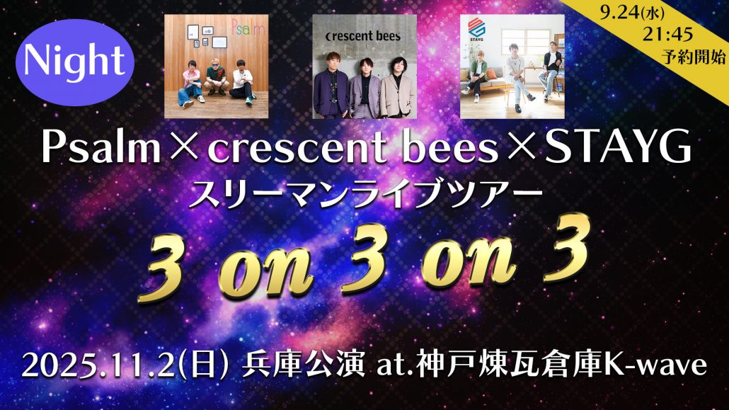 11/2 スリーマンライブ Psalm×crescent bees×STAYG 『3on3on3 in神戸』