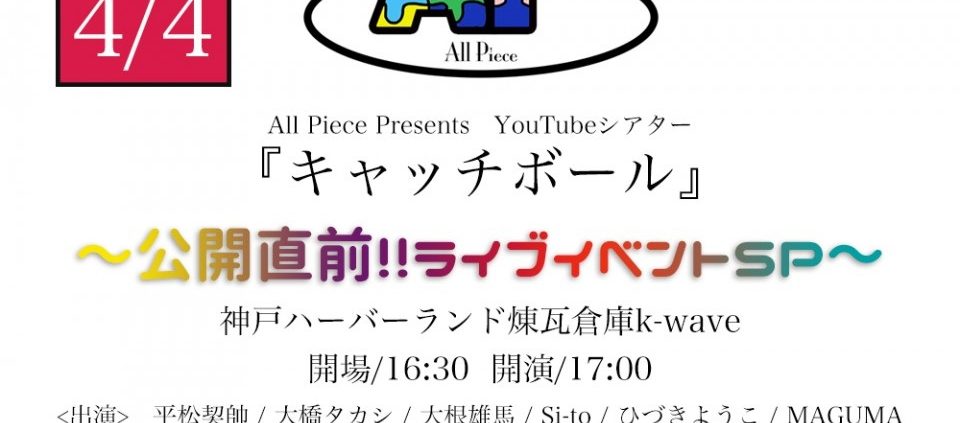 4/4 All Piece Presents YouTubeシアター【キャッチボール】公開直前!!ライブイベントSP