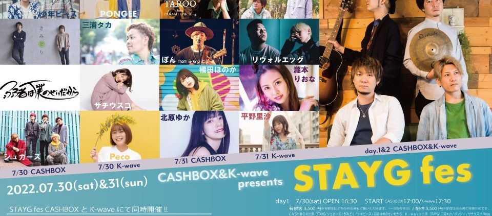 [出演] CASHBOX出演 STAYG/TAROO from キャラメルパッキング/ぽん from ふらっと♭/橘田ほのか/北原ゆか K-waev出演 STAYG/リヴォルエッグ/ねっちぼっち/平野里沙/瀧本りおな